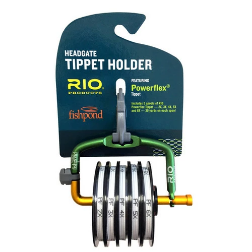 INCLUDING 5 X RIO TIPPET SPOOLS. RIO has teamed up with Fishpond to offer the perfect bundle to attach to your vest or bag. 5, 30-yard spools of RIO’s Powerflex tippet material (2X to 6X) are included with Fishpond’s Headgate tippet dispenser in a ready-to-hit-the-water configuration. The Headgate has a spring loaded hinge design that allows anglers to easily add or change tippet spools, and features a built in cutting blade for ultimate convenience. Powerflex tippet has a high knot and tensile strength, and is made of a clear, nylon copolymer. It is ideal for dry flies, soft hackles and nymphs. Includes 5, 30 yard spools of RIO Powerflex Tippet: 2X, 3X, 4X, 5X and 6X Rotatable razorblade line cutter Holds up to 7 tippet spools Secure, spring-loaded pull for access to change spools