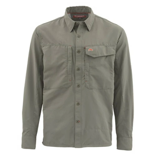 DESCRIPTION Spring in the Rockies means baetis littered back eddies, the off-key chorus of awakening cicadas, and overtime for guides chasing hatches of playoff proportions. For fishing seasons without sleep, Simms’ Guide LS shirt is a feature-rich river ally—always at the ready. Pro-inspired architecture stems from easy-wearing, quick-drying nylon fabric kitted with UPF50 sun protection. When the heat flares, stay fresh thanks to a vented mesh-lined back panel that amplifies airflow. Roll up sleeves, lock them in place with button retainers, and cast all day in comfort. And keep it simple, smart, and in-focus with fly box compatible chest pockets and a sunglasses cleaning chamois at the shirt’s hem. FEATURES Durable, quick-dry, wicking UPF50 nylon fabric Two pleated, fly box compatible chest pockets with hook & loop closure; two hidden, mesh backed, zippered chest pockets; internal license pocket & accessory loop Vented, mesh lined back panel wicks moisture & promotes air flow Roll-up sleeves with button retainers New sunglass cleaning chamois at hem FABRIC TECH:100% Nylon ripstop fabric APPROX. WEIGHT: 10 oz STYLE FIT: Traditional Fit, click here to read more